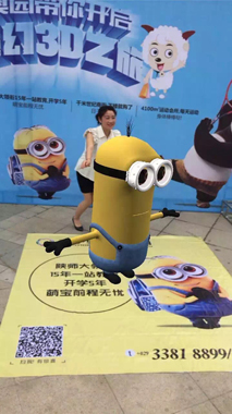 我公司开发的魔幻走廊,可将平面卡通,通过移动设备扫描观看实现三维仿真效果,集趣味性、现代感、科技氛围于一体,可实现多种3D卡通效果。
